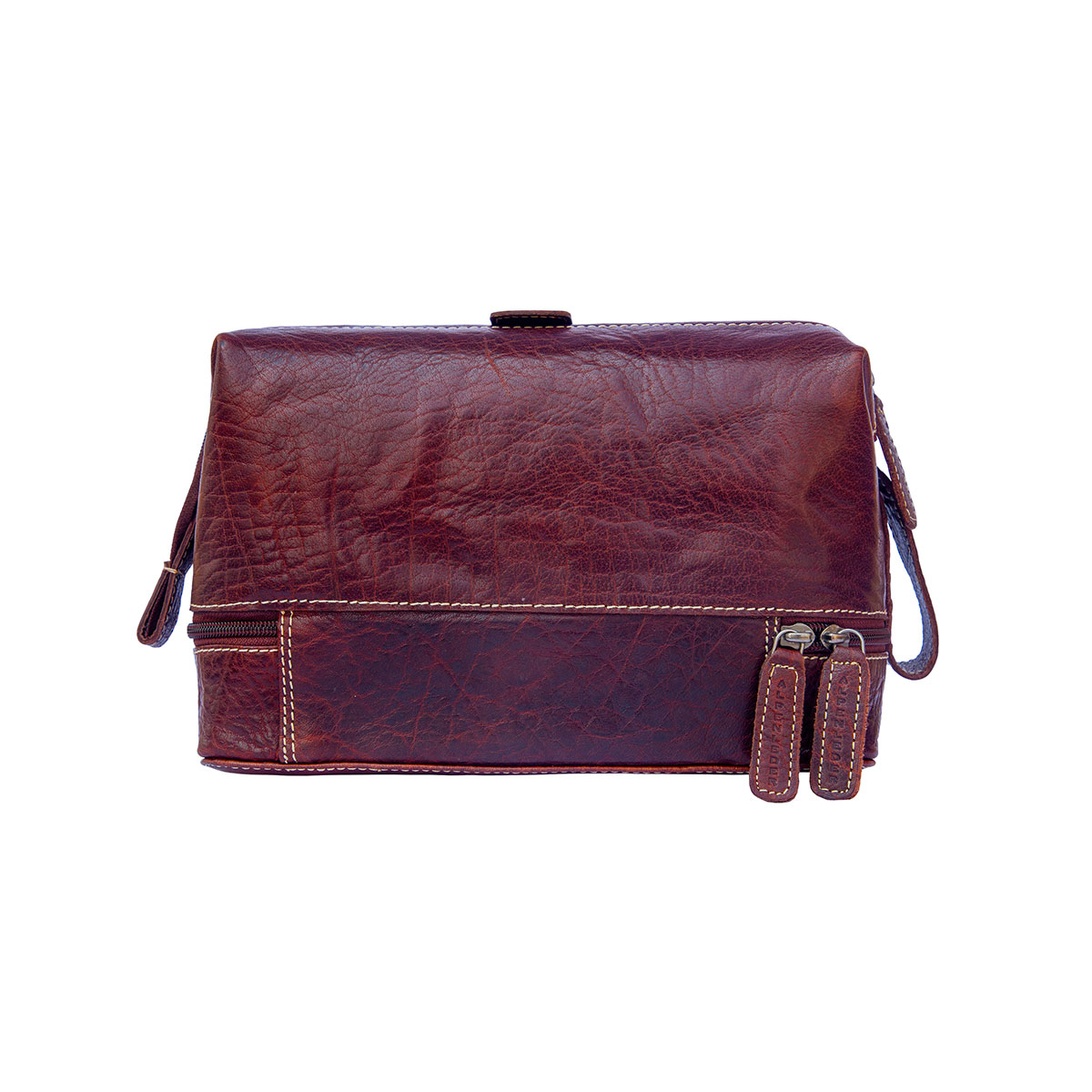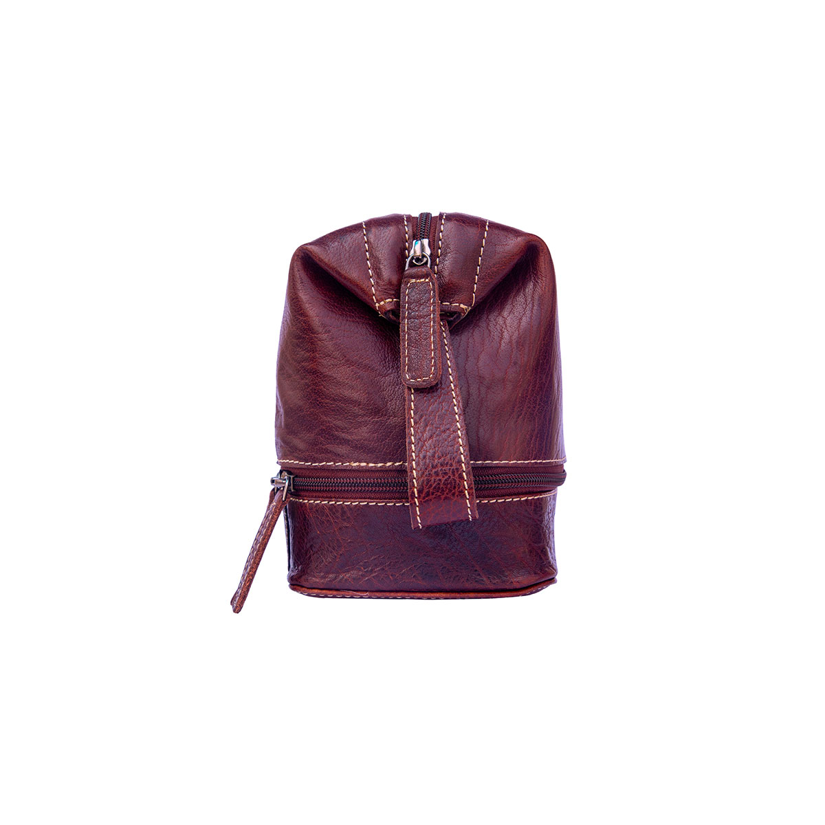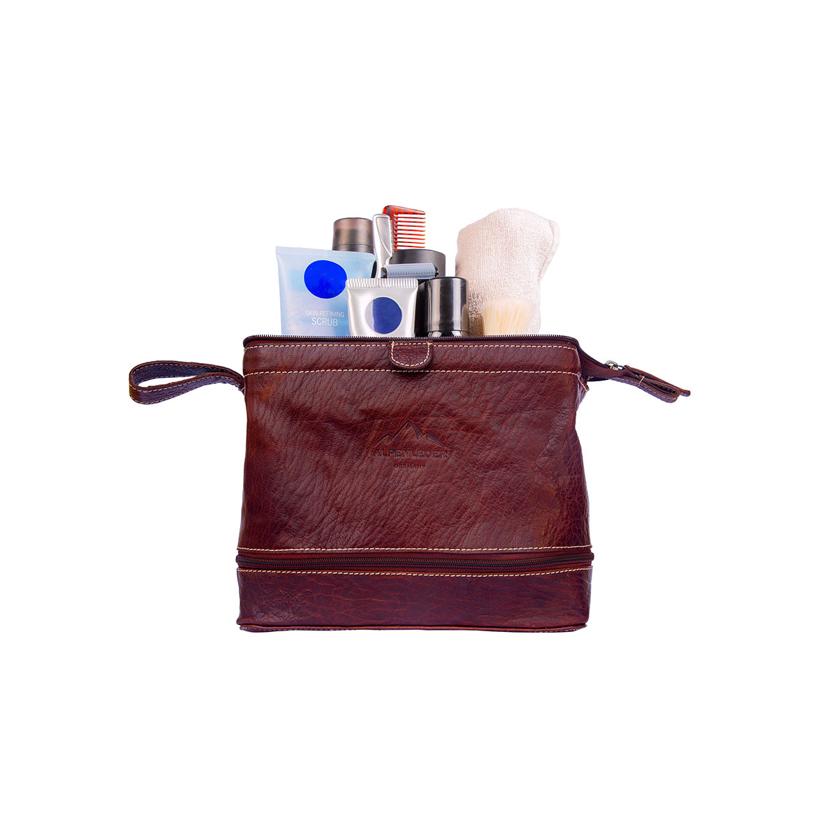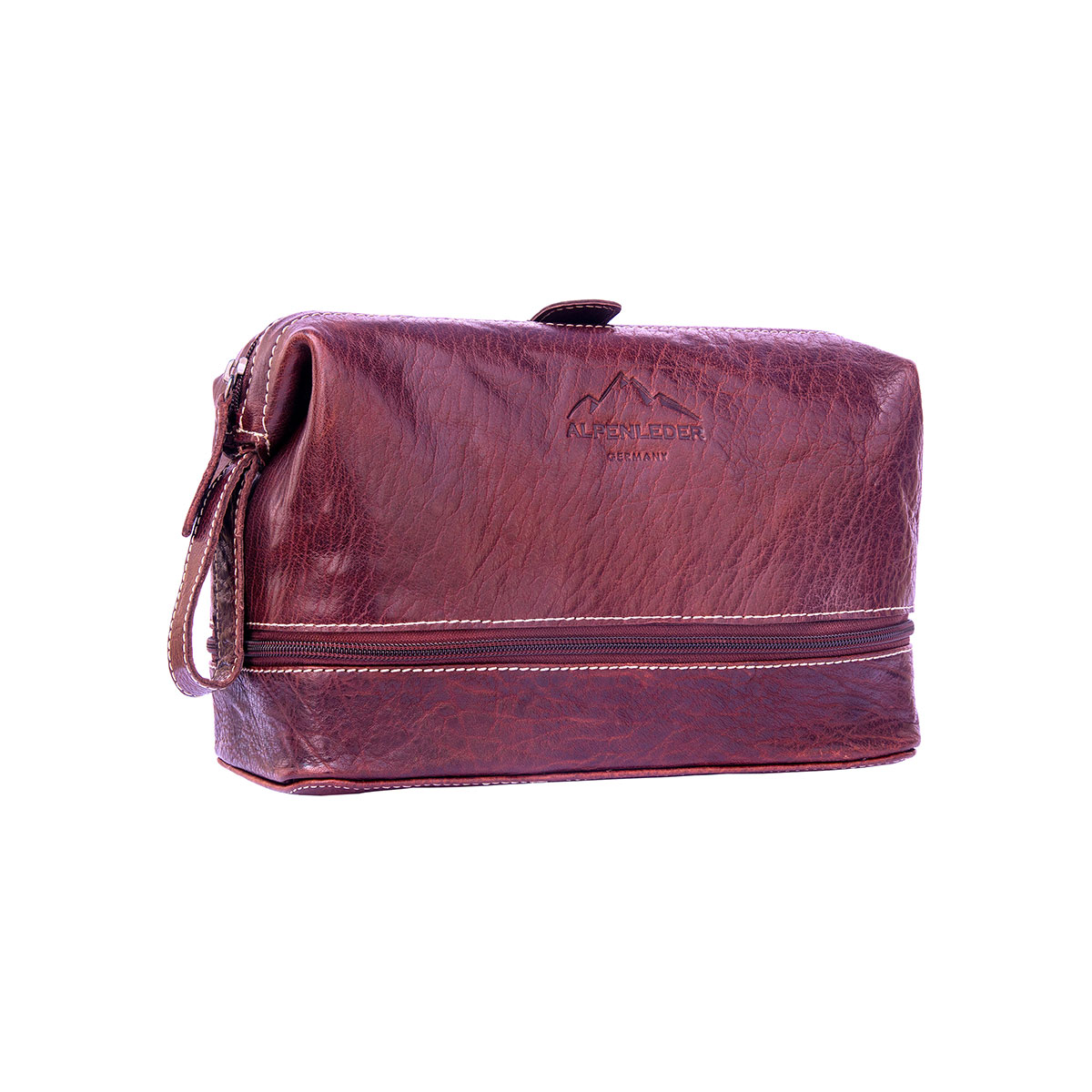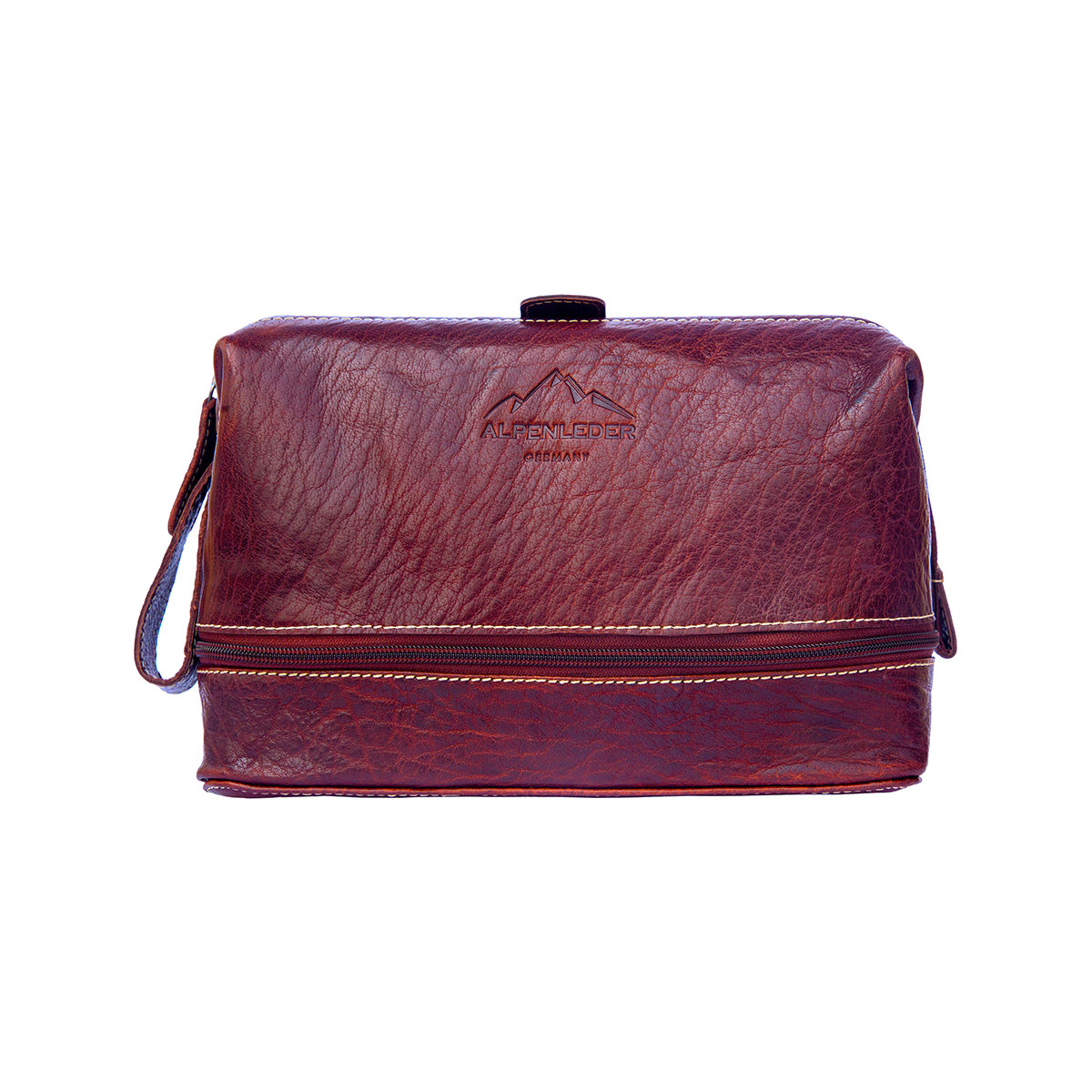 Entdecken Sie den hochwertigen Kulturbeutel "LAGO DI COMO" in der Lederfarbe brandy