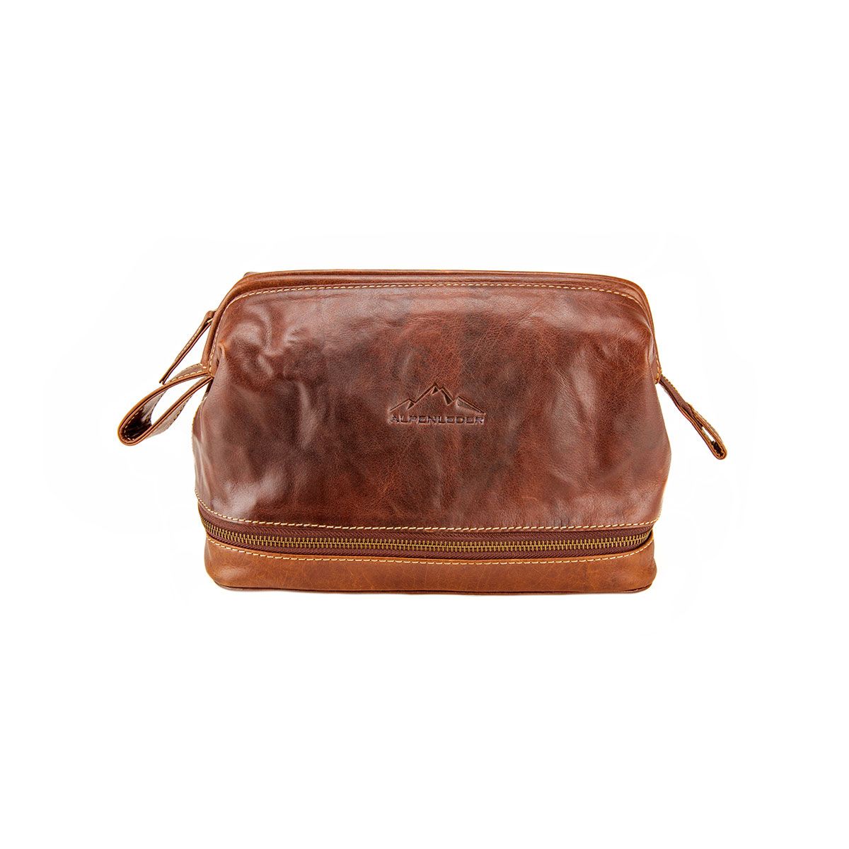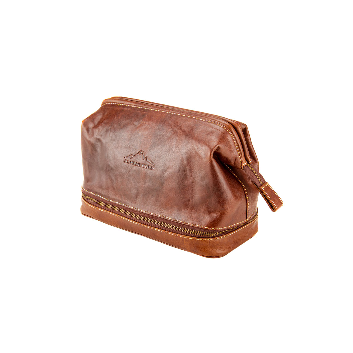 Entdecken Sie den hochwertigen Kulturbeutel "LAGO DI COMO" in der Lederfarbe cognac
