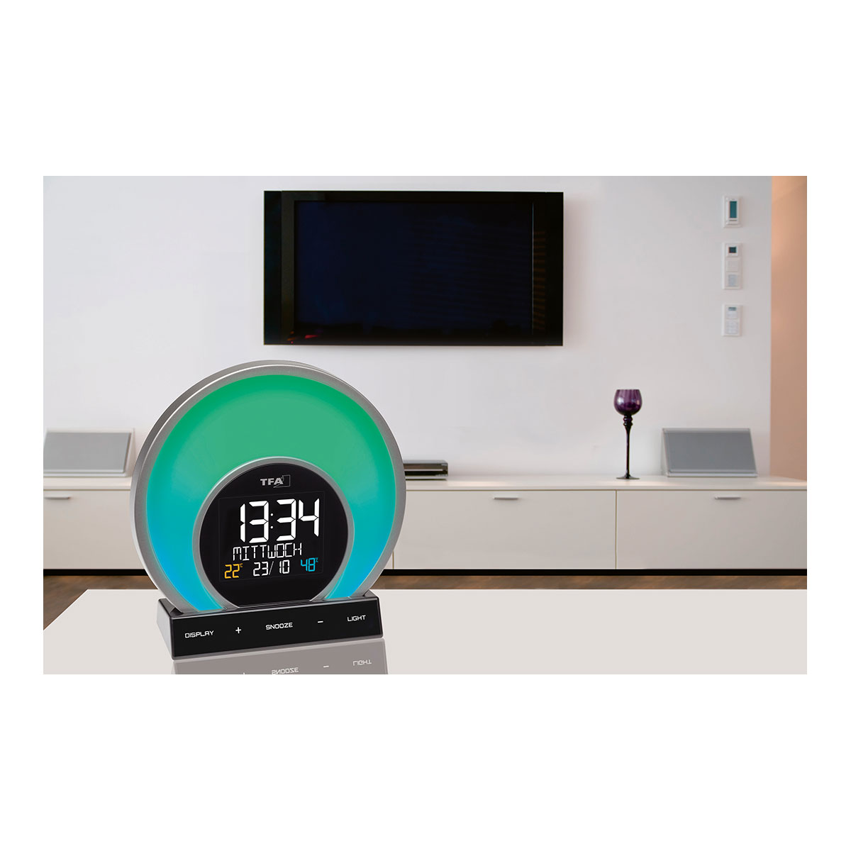 Lichtwecker mit Farbwechsel-Stimmungslicht und Raumklima